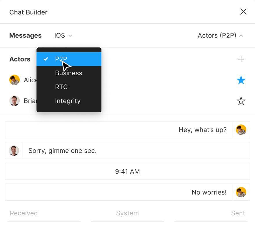 Facebook’s Messenger and WhatsApp design teams are constantly building–you guessed it–message designs. With the Conversation Generator Plugin we made for them, they can now quickly and easily populate their work with pre-set conversation bubbles, profile photos, and more, speeding up repetitive tasks.