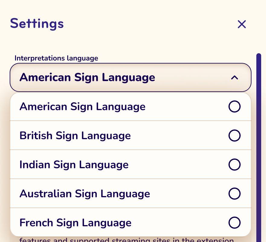 Our work was to bring SignUp’s vision to life: we built a browser extension that overlays streaming services with a resizable window showing sign language interpretation.